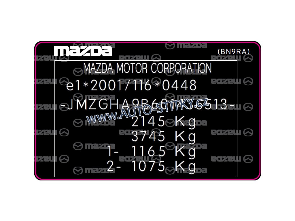MAZDA - PVC štítek - samolepící, laminace
