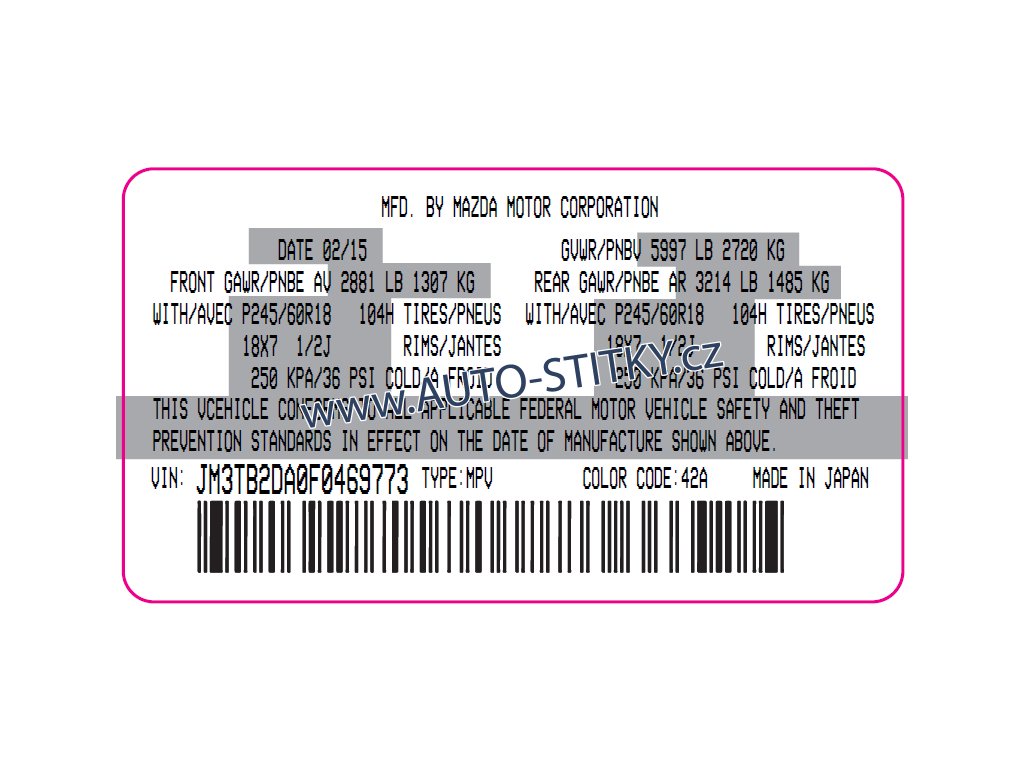 Výše prosím vložte přílohu (foto poškozeného štítku, případně foto či scan Velkého technického průkazu).